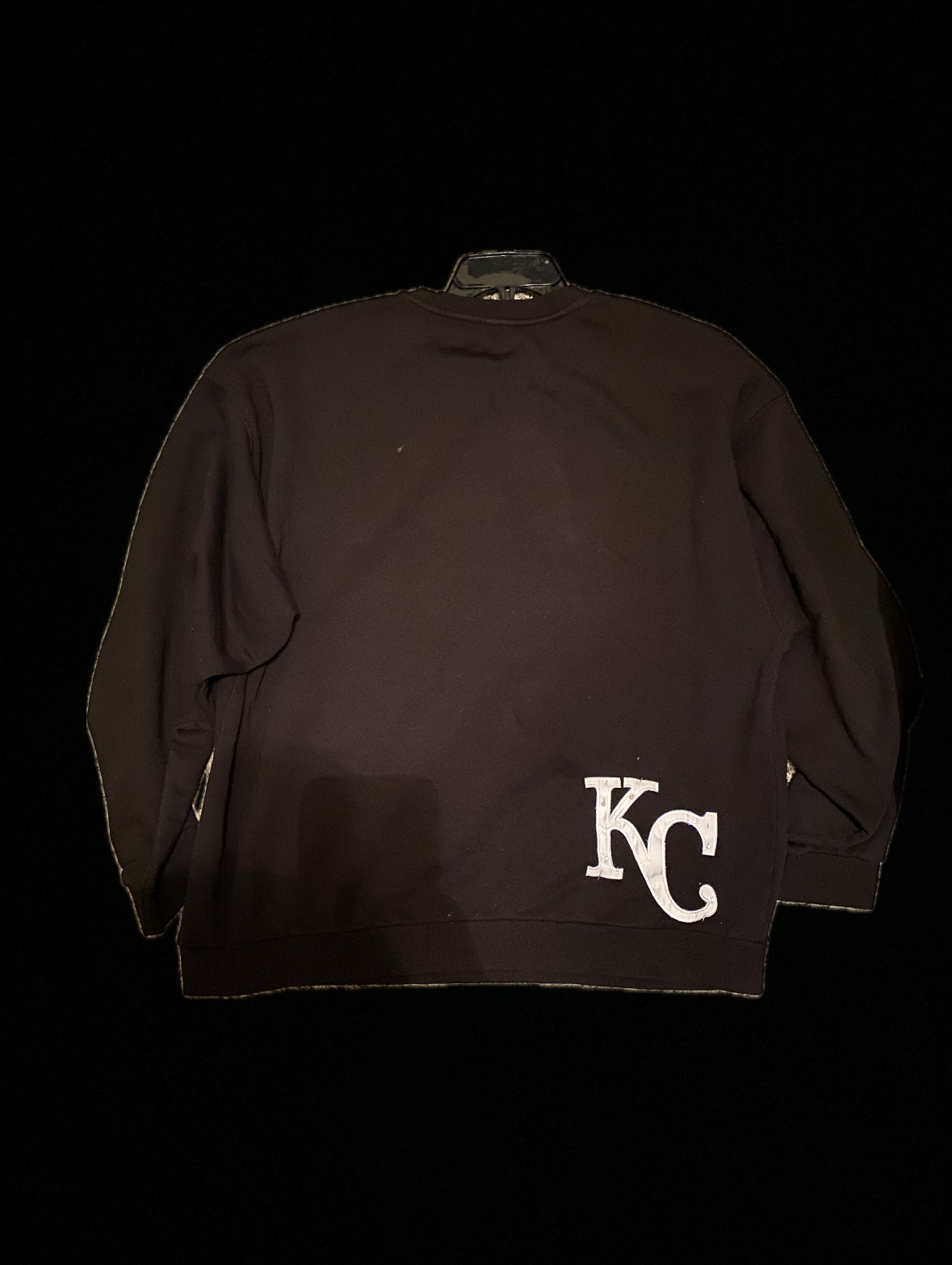 This black TBKC sweatshirt features a bold, oversized graphic of a child's face with a blue spoon sticking to their nose, adding a surreal and playful touch. Above the child's eyebrow is the text "GET PAPER" in a tattoo-style font, giving the piece a streetwear edge. The design merges humor and attitude, making it a standout statement item.