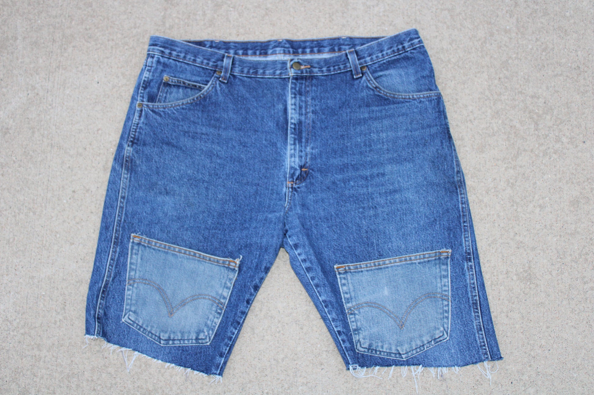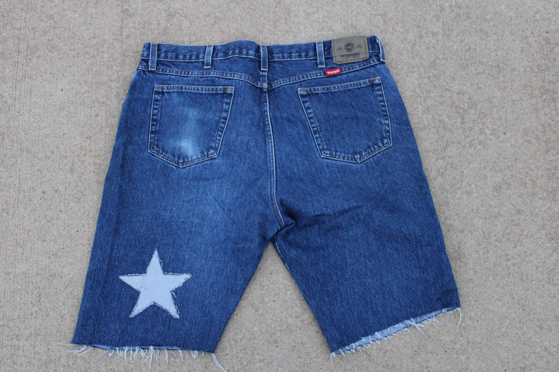 These dark-wash TBKC denim shorts strike a bold, upcycled vibe with two repurposed jean back pockets sewn onto the front legs, adding a playful twist to classic workwear. The contrast between the lighter pocket fabric and deep indigo base gives them a gritty, street-smart edge. Sturdy, straightforward, and unapologetically unconventional—these shorts speak DIY swagger loud and clear. Oh yeah and remember... YOU ARE A STAR!